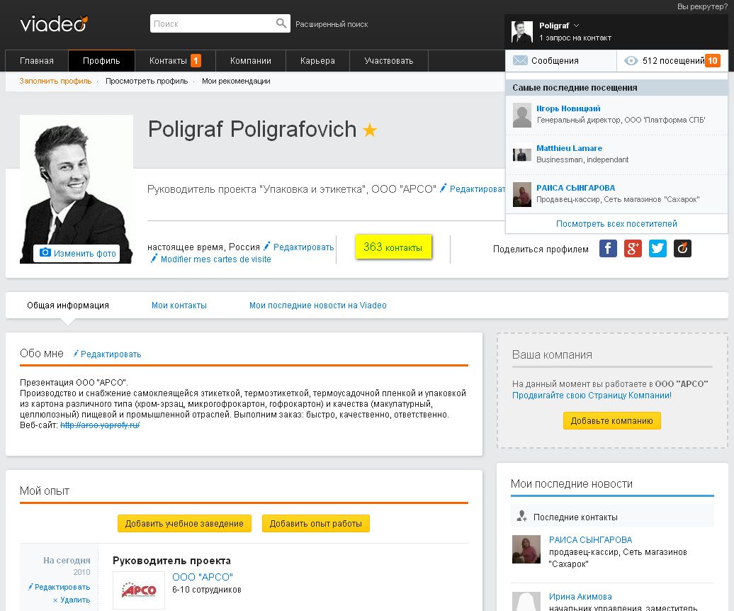 Социальная сеть "vIADEO"