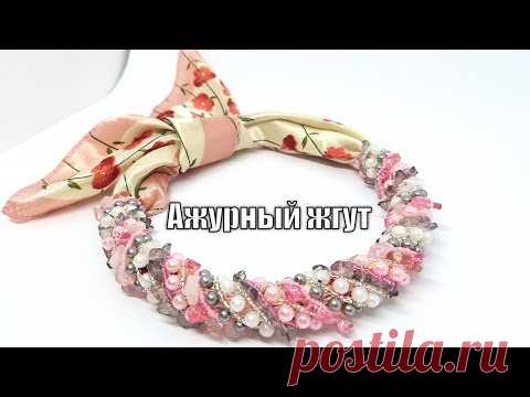 Ажурный жгут из бусин, сколов натуральных камней и жемчужных бусин. Мастер класс. Бисероплетение.