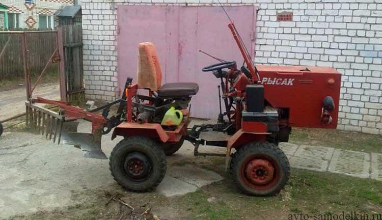 Самодельный мини трактор с двигателем УД-25: фото и описание самоделки. Технические характеристики: ДВС - УД-25 (двухцилиндровый, рабочий объём 0,42, мощность 12 л.с). Трансмиссия - ЛуАЗ. Ходовая - ЛуАЗ. Рама переломного типа. Габариты (база-колея) 1300 мм.