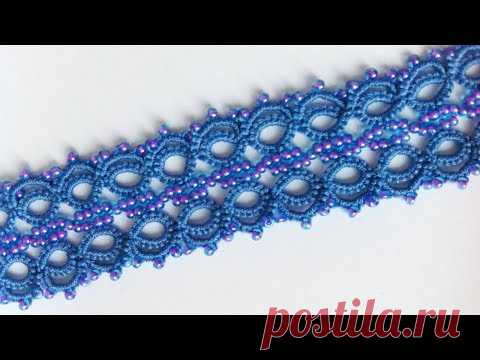 Браслет фриволите с бисером. Мастер класс фриволите иглой для начинающих. Bracelet frivolite needle - YouTube