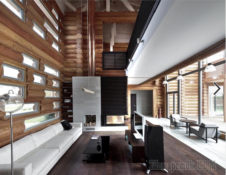 Интерьер дома из сруба в Подмосковье, поселок "Белые росы" Интерьер сруба, 360 кв.м. Московская обл., Истринский район, поселок «Белые росы»«Проектированием интерьеров этого деревянного жилого дома, расположенного в подмосковном поселке Новодарьино, занималис...