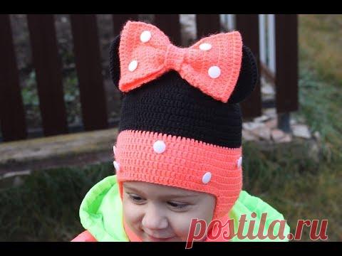 Шапка "Мини Маус" крючком на девочку 3-5 лет (обхват головы 49-51 см).