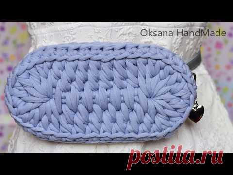 Поясная сумка из трикотажной пряжи. 1/2 часть МК. Crochet waist bag