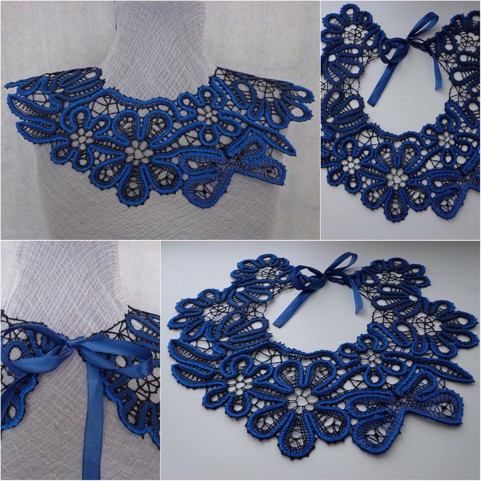 Воротник-жабо "Лето" кружевной сплётен на коклюшках. Нитки- хлопок синего и чёрного цвета Длина по обхвату-40см,ширина-10см