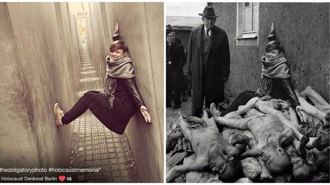 Изpaильский сатирик создал проект, в котором совместил селфи туристов у берлинского мемориала памяти жертв Холокоста с документальными сн