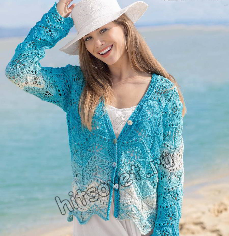 Летний ажурный жакет - Хитсовет Модный летний жакет в морском стиле с ажурным узором для женщин со схемой и пошаговым бесплатным описанием вязания.
