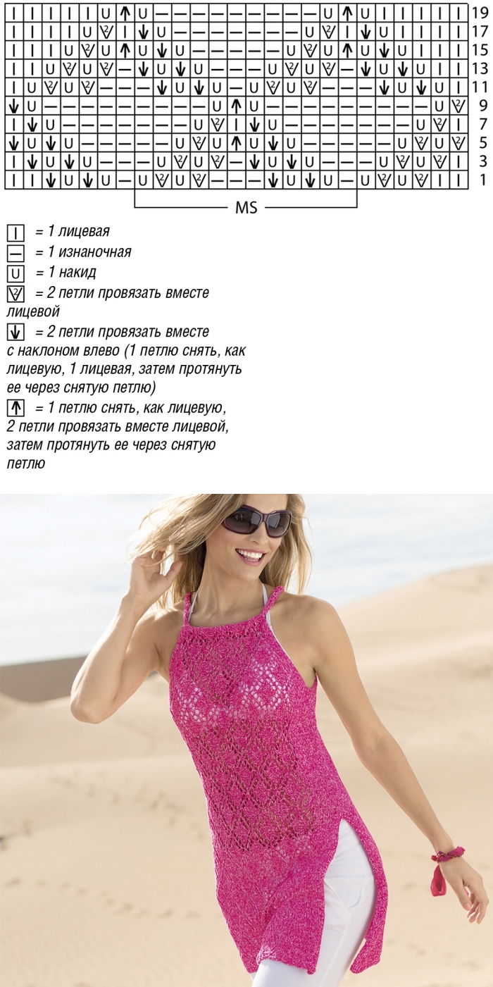 ТУНИКА НА БРЕТЕЛЯХ С УЗОРОМ ИЗ АЖУРНЫХ РОМБОВ