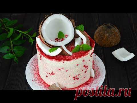 Торт МАЛИНА - КОКОС ☆ Кокосовый БИСКВИТ ☆ Малиновый КУРД