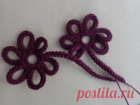 Уроки вязания. Как связать цветок крючком с стебельком гусеничкой.