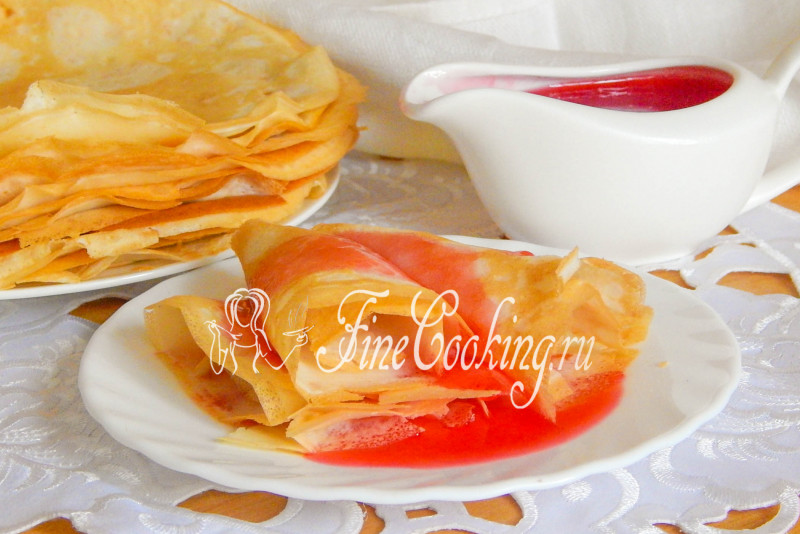 - Я подавала их с домашним сиропом из красной смородины - очень вкусно. Угощайтесь, друзья! А еще попробуйте самый простой рецепт блинов на молоке - они просто не могут не получиться!