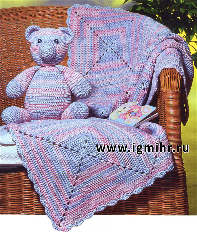 Для сладких снов. Вязаный друг малыша – мишка + покрывало из квадратов. Крючок