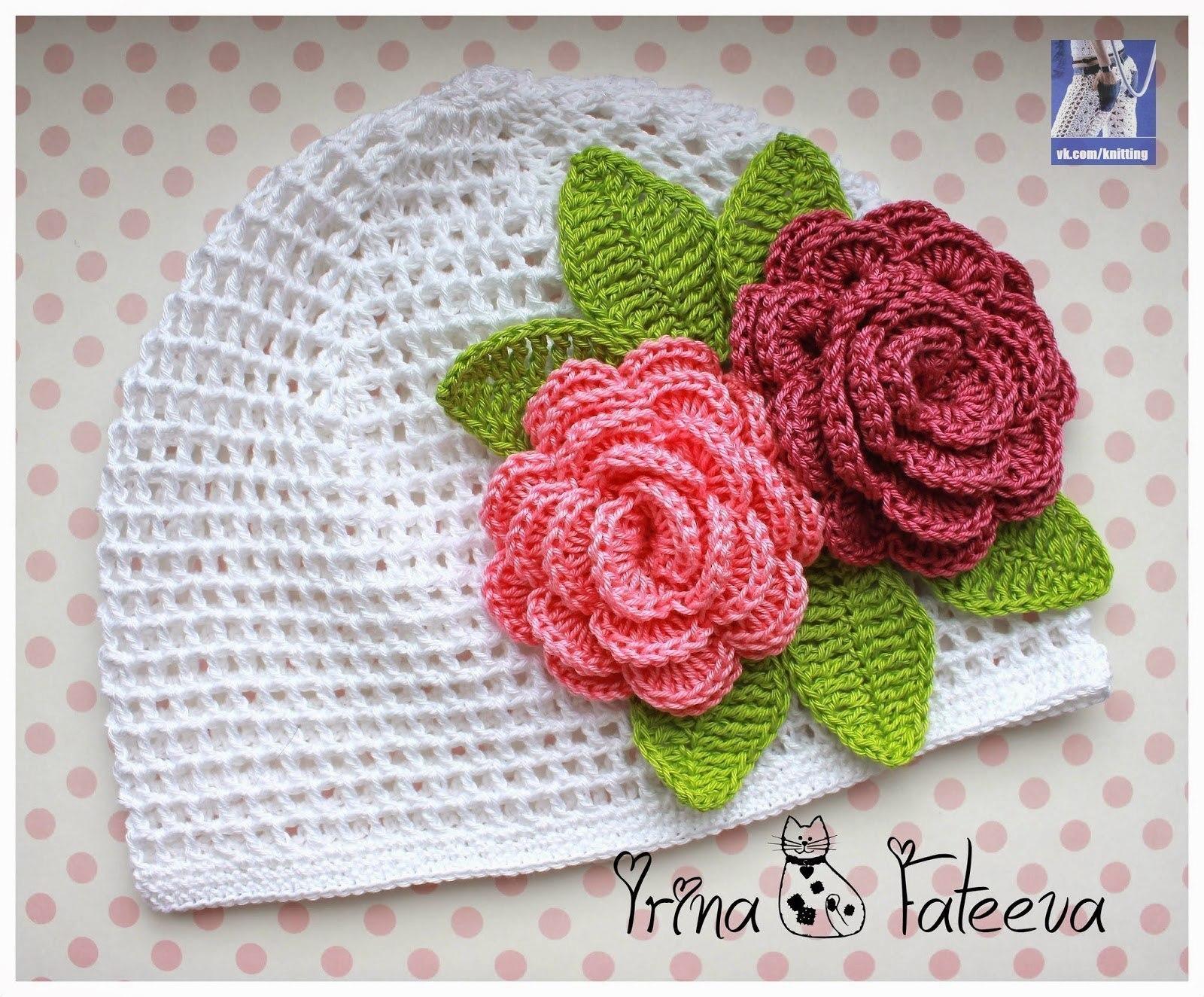 Шапочка ' Две розы' основное полотно связано из ниток альпина Сати крючок 2. Розы из бегонии, листики тоже из Сати.