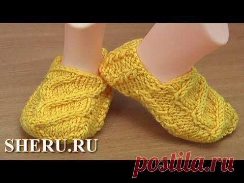 Супер стильные пинетки-тапочки на двух спицах Урок 260