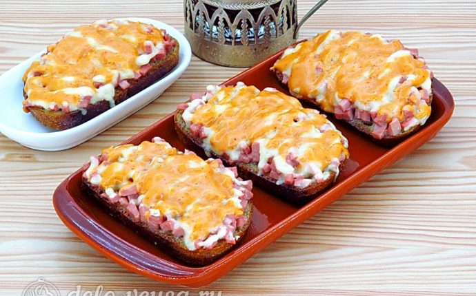 Горячие бутерброды с колбасой и сыром в духовке, рецепт с фото