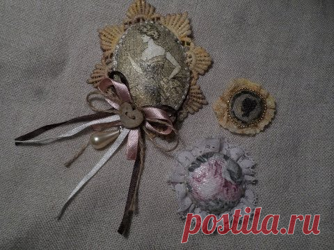 Медальоны-броши с декупажными мотивами для декора. Мастер класс.