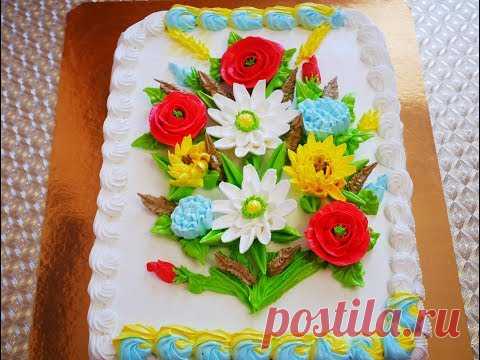 Украшение торта в домашних условиях кремом БУКЕТ ПОЛЕВЫХ ЦВЕТОВ