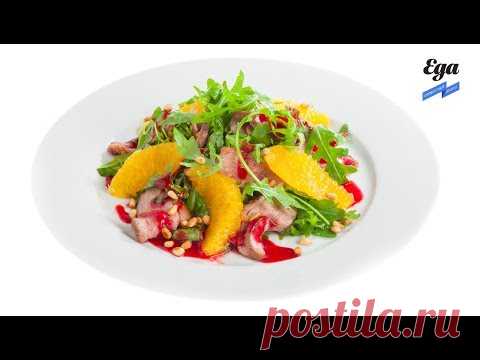 Салат с утиной грудкой, рукколой и клюквенным соусом