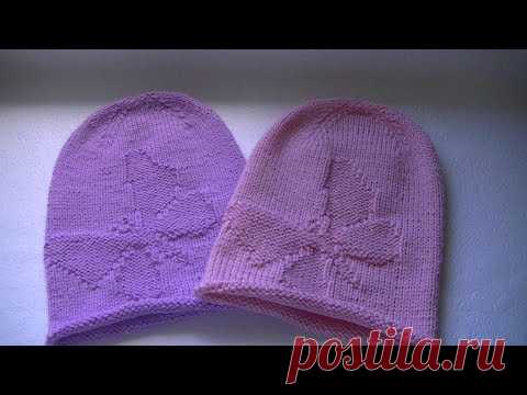 Вязание шапки бини с узором "бабочка"