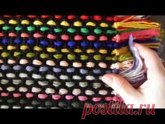 Вес 1 квадратного метра такого коврика 1кг 100гр. Подробно с 3й минуты видео. Вяжу крючком сетку и продеваю в отверстия остатки пряжи. Мой другой канал(1): h...