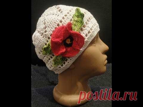 Шапочка Часть 3 Цветок + листок Вязание крючком Little cap Part 3 Flower + sheet Knitting by a hook