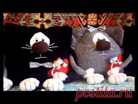 Подушкa кот+как связать кота спицами(хвост).Часть 1.Котоподушка.
