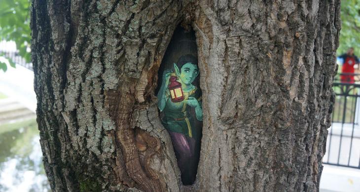 Маленький принц и Ежик в тумане: кто рисует сказочные картины на деревьях Москвы В 2015 году в Измайловском лесопарке посетители увидели нарисованного на дереве эльфа, играющего на дудочке. Позже на другом дереве появился Ежик в тумане. Посетители и руководство парка гадали: откуд...