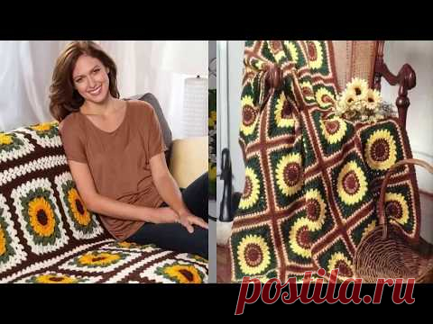 КРАСИВЫЙ ПЛЕД КРЮЧКОМ ПОДСОЛНУХИ. МАСТЕР КЛАСС