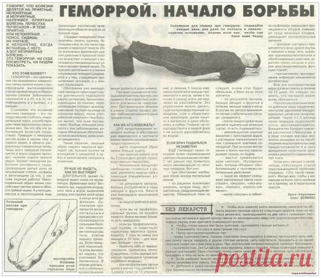Главная   /   Здоровье   /   БОЛЯЧКИ: ГЕМОРРОЙ, ПРЯМАЯ КИШКА
