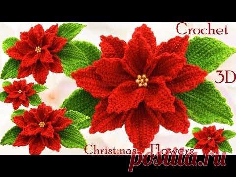 Como hacer flores Nochebuena a Crochet en punto 3D tejido tallermanualperu