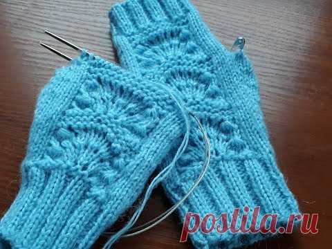 Митенки спицами ажурные. Часть 2. 11-29 ряды. - YouTube
