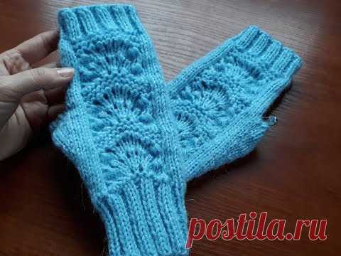 Митенки спицами ажурные. Часть 3. 30-43 ряды. - YouTube