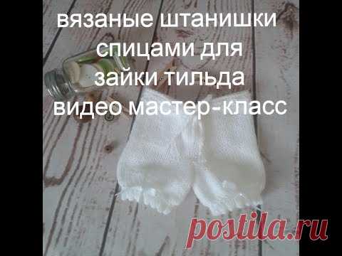 Вязаные штанишки спицами для зайки Тильда видео мастер класс