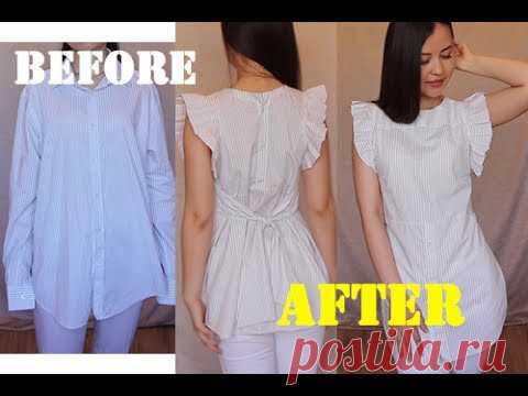 Men's shirt into Pretty shirt with ruffles 100%upcycle refashion idea - YouTube