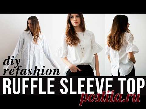 DIY ruffle sleeve top refashion from dress shirt - YouTube