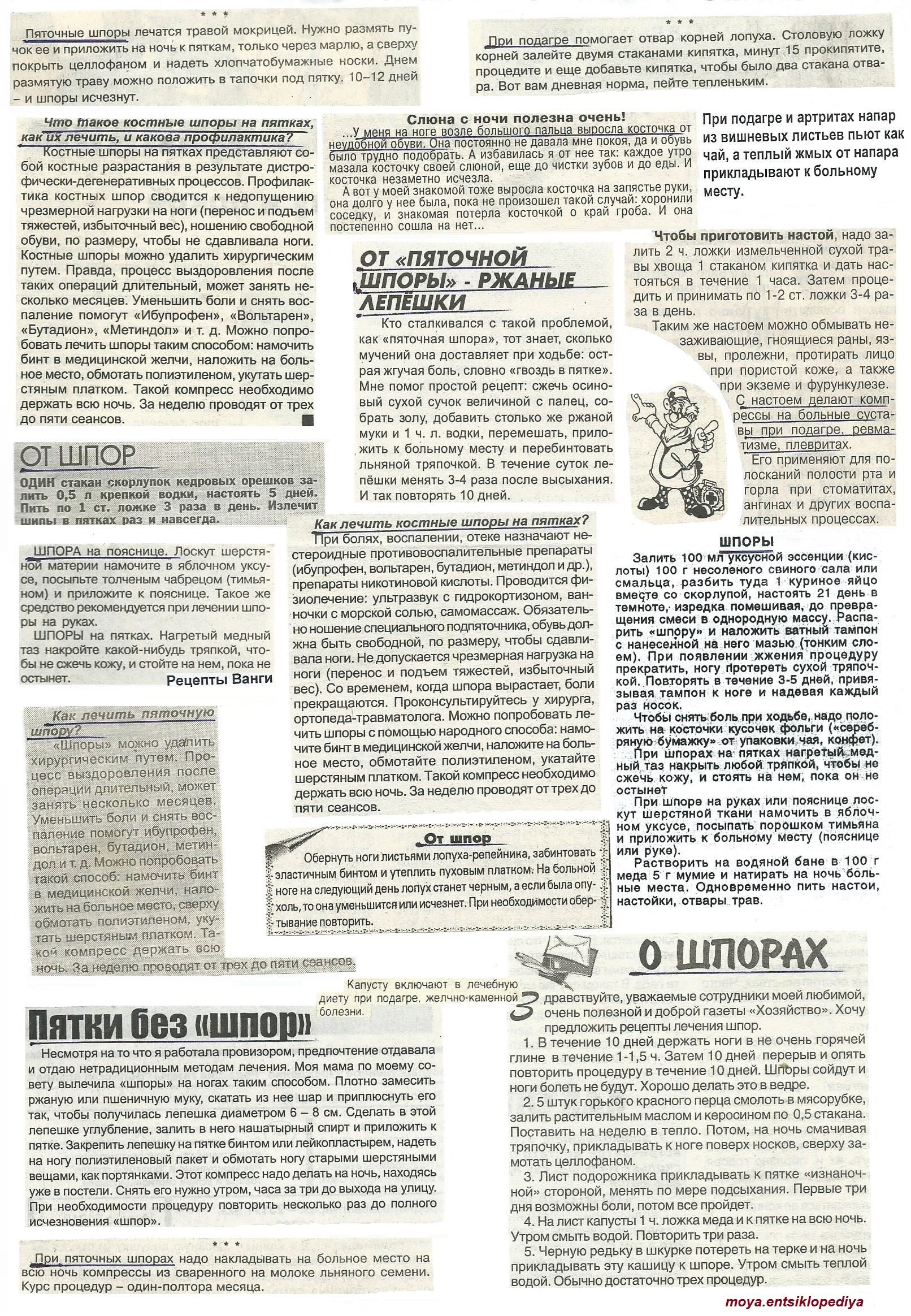 Отложение солей. Подагра. Шпоры.