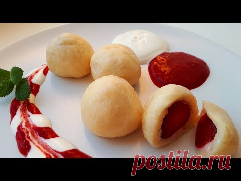 Вкусные Творожные Шарики с Клубникой на Завтрак. Творожные Кнедлики с Клубникой.