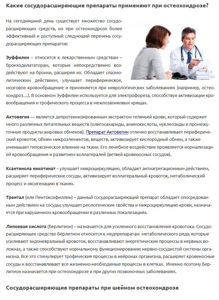 Сосудорасширяющие препараты при остеохондрозе: лечебный эффект, действие
