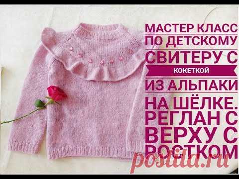 Свитер для девочки на 3 года с воланом. Реглан с верху, росток