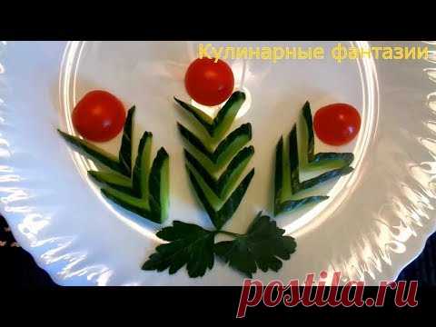 НЕСКОЛЬКО ИДЕЙ УКРАШЕНИЯ ТАРЕЛКИ! КАК КРАСИВО НАРЕЗАТЬ ОГУРЦЫ! КАРВИНГ ОВОЩЕЙ!