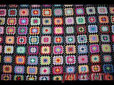 Одеяло "бабушкин квадрат". Мотивы крючком.Часть 1- вяжем мотив. Afgan blanket. Easy pattern.