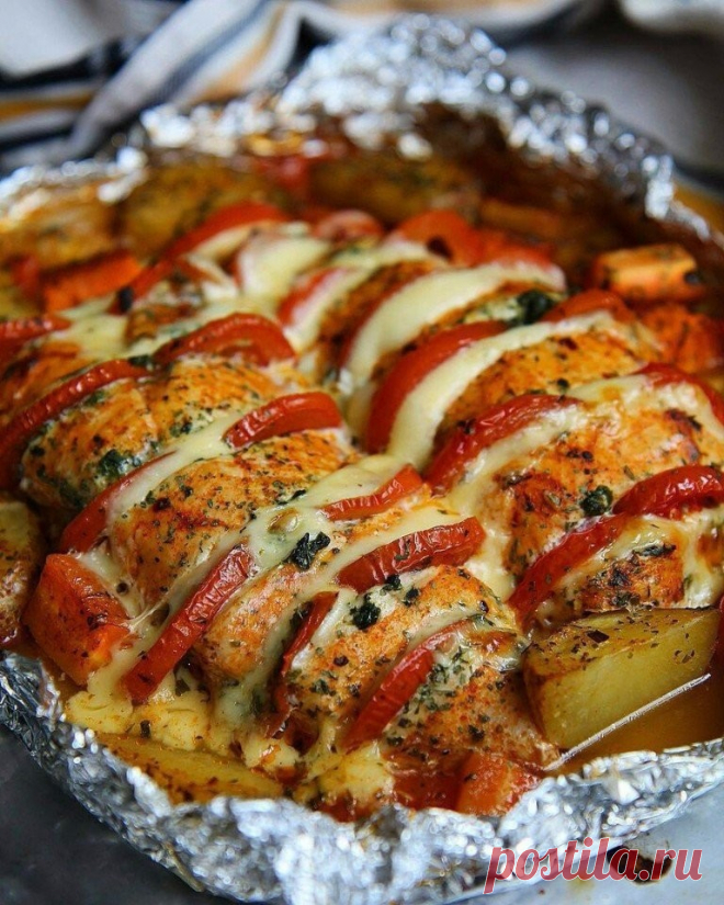 Индейка с сыром и овощами в духовке на 100 грамм - 69.39 ккал, Б/Ж/У - 6.91/3.23/3.21 Ингредиенты: 2 филе грудки индейки (~700 г у меня) 10 мл оливкового масла 200 г помидорок 50 г сыра 50 г шпината (по желанию) Паприка, соль, перец, чеснок и травы по вкусу Любые овощи (у меня морковка, картошка, лук и помидоры) Приготовление: Сначала займёмся маринадом: я смешала паприку, соль, перец, совевый соус и немного мёда, добавила чеснок, это уже проверенное сочетание,...