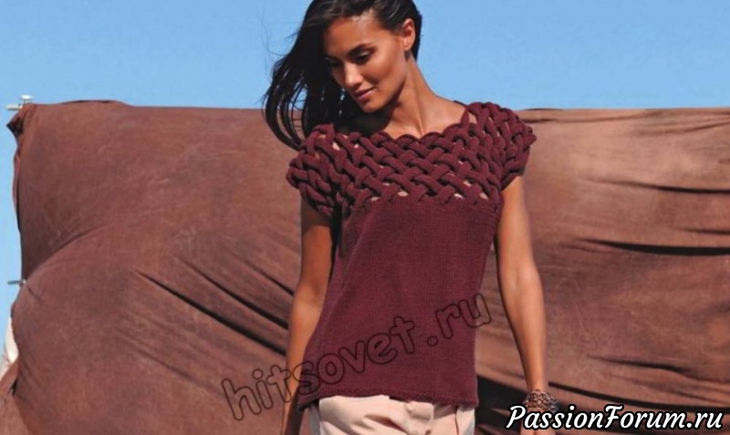Топ с плетеным узором - запись пользователя Лисик (Светлана) в сообществе Вязание спицами в категории Вязание для женщин спицами. Схемы вязания спицами Вам потребуется: 8 (9, 10, 11) мотков цвета мускатного ореха (220.571) пряжи Bergere de France Sonora, состоящей из 50% хлопка, 50% акрила, длиной нити 115 метров в 50 граммах; спицы № 4; 1 дополнительная спица.