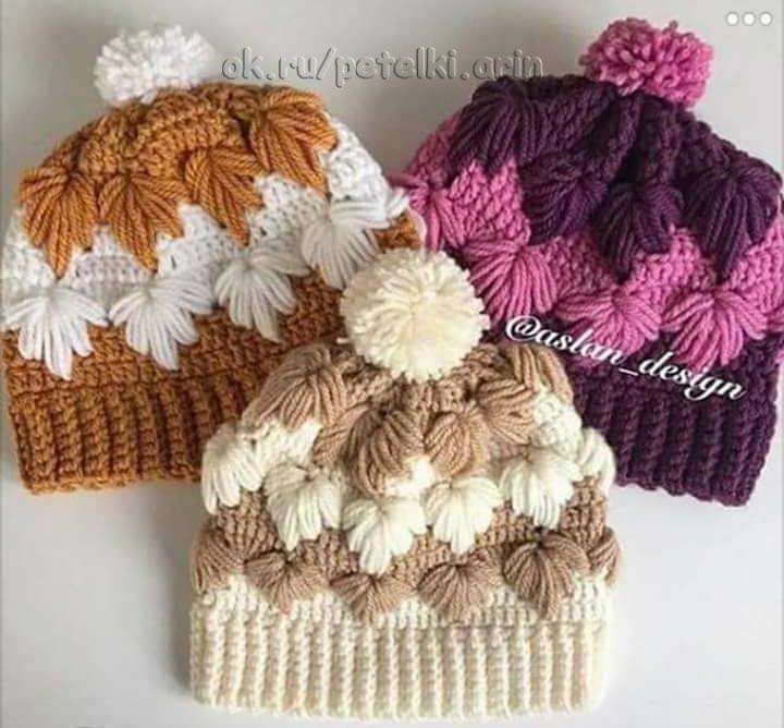 Очень красивый объемный узор крючком, который лучше вязать пряжей контрастных цветов. Название у этого узорчика "гусиные лапки". Можно вязать им все, что угодно - от шапочек, до пледов. И да - узор двусторонний!