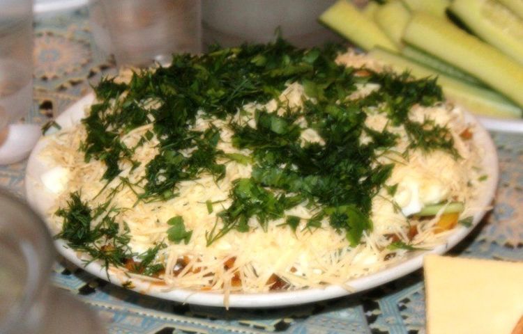 Салат "Диёр" - Вкусные рецепты Содержание: Ингредиенты Приготовление Этот салат пришел к нам из узбекской кухни. Он прост в приготовлении и очень сытный, поэтому отлично подойдет в качестве закуски на обед или легкого ужина. Время приготовления: 30 минут Ингредиенты картофель — 0,5 кг куриное яйцо — 5-6 шт свежий огурец — 2 шт твердый сыр — 300 гр майонез, соль …