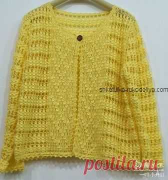 Желтый жакет Желтый жакет крючком. Женский жакет с ажурной вставкой