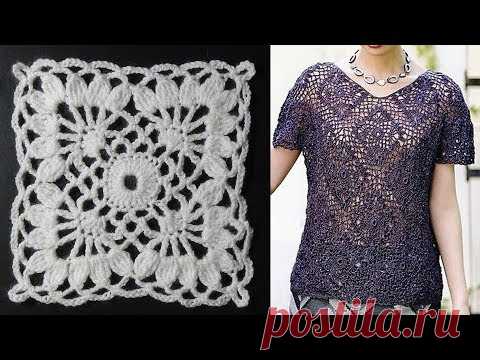 Ажурный квадратный мотив для кофточки крючком. мк.