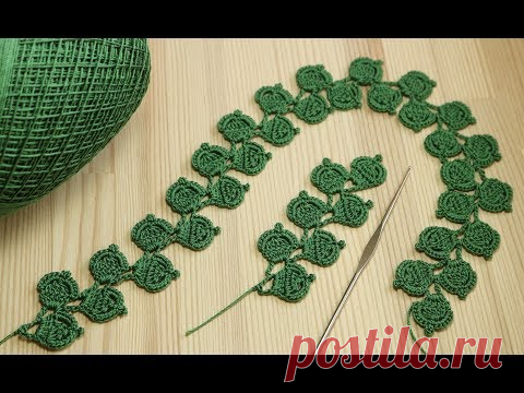 Ленточное кружево - веточка листиков - вязание крючком Crochet Simple Lace