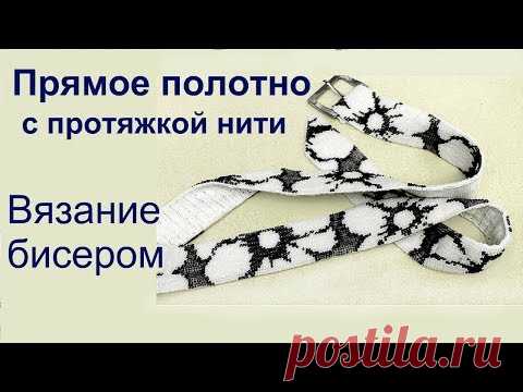 Прямое полотно с протяжкой нити. Вязание крючком с бисером. Урок 18