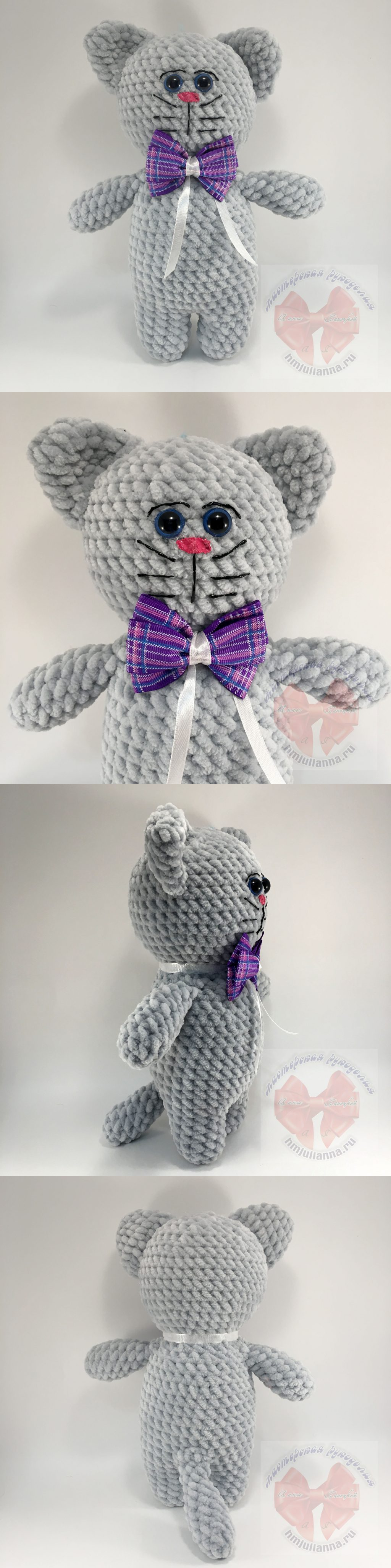 Изящный вязаный котик амигуруми, светло серый, 23 см.Мастерская рукоделия Анны Ганоцкой