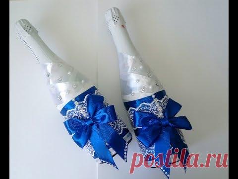СВАДЕБНОЕ Шампанское ДЛЯ ЖЕНИХА И НЕВЕСТЫ, бутылки лентами и тканью